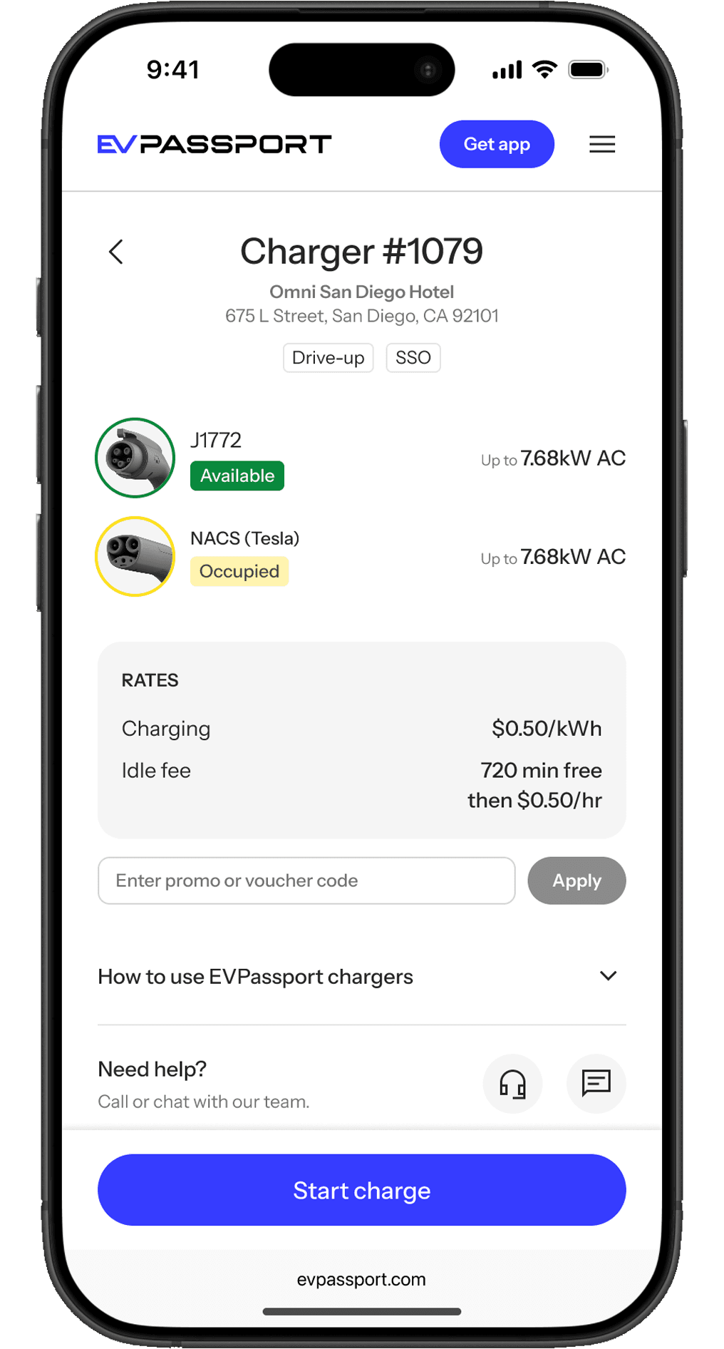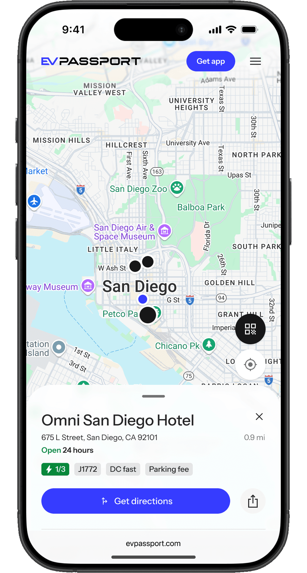 Find an EVPassport charger nearby with our mobile app, popular map applications (Google Maps, Apple Maps, PlugShare), or in your vehicle's navigation system.