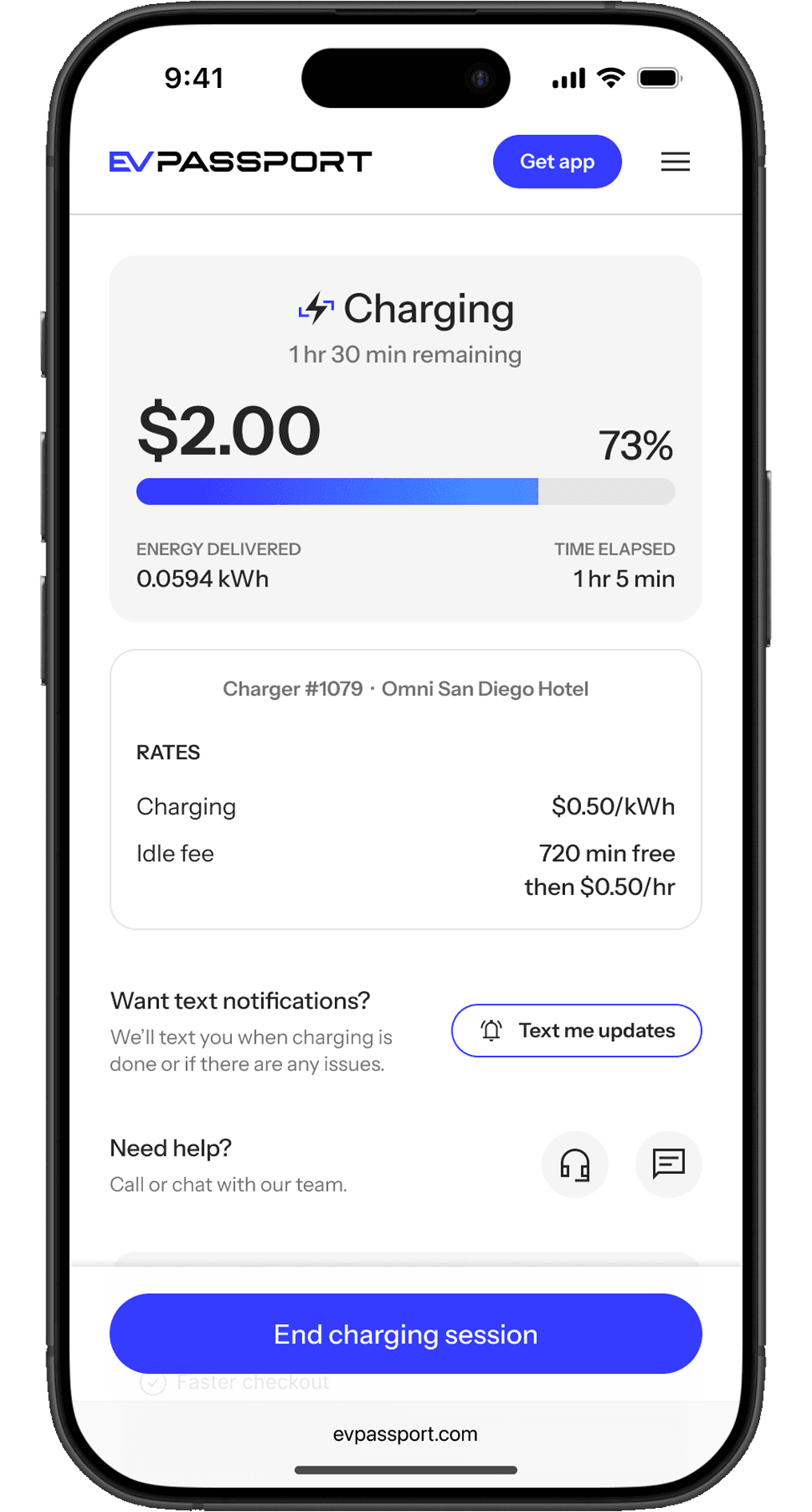 Keep track of your charging session and when complete, receive an instant receipt in the driver experience and your email.
